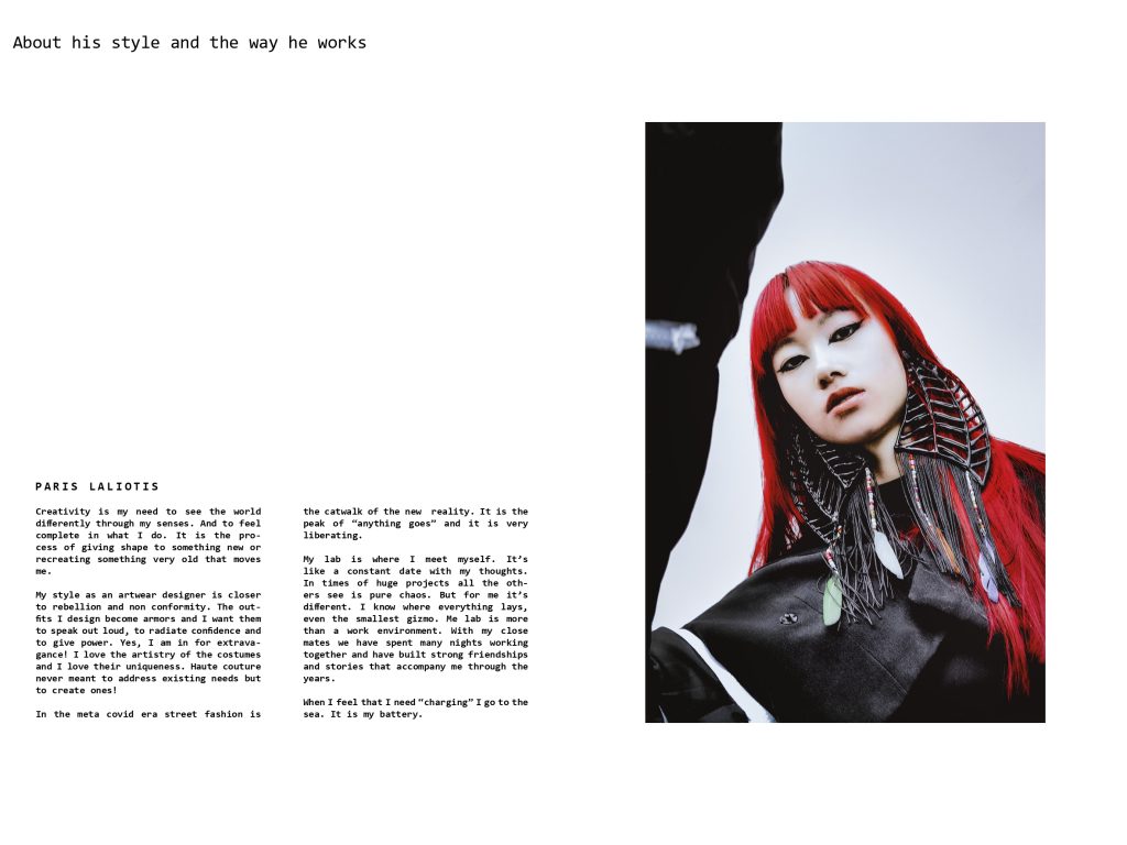 Paris Laliotis has been featured in renowned fashion magazines and online platforms that highlight his distinctive approach to design. His work in fashion accessories and artistic direction has drawn attention for its creativity, craftsmanship and bold aesthetic.